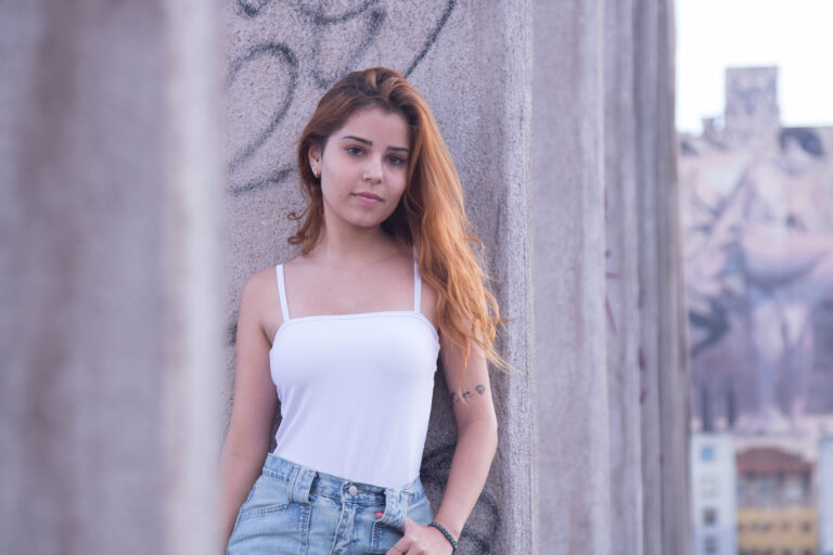 - A dica do fotógrafo: Utilizamos a profundidade de campo (fundo desfocado) para que o movimento da cidade componha a cena sem roubar a atenção do seu rosto.